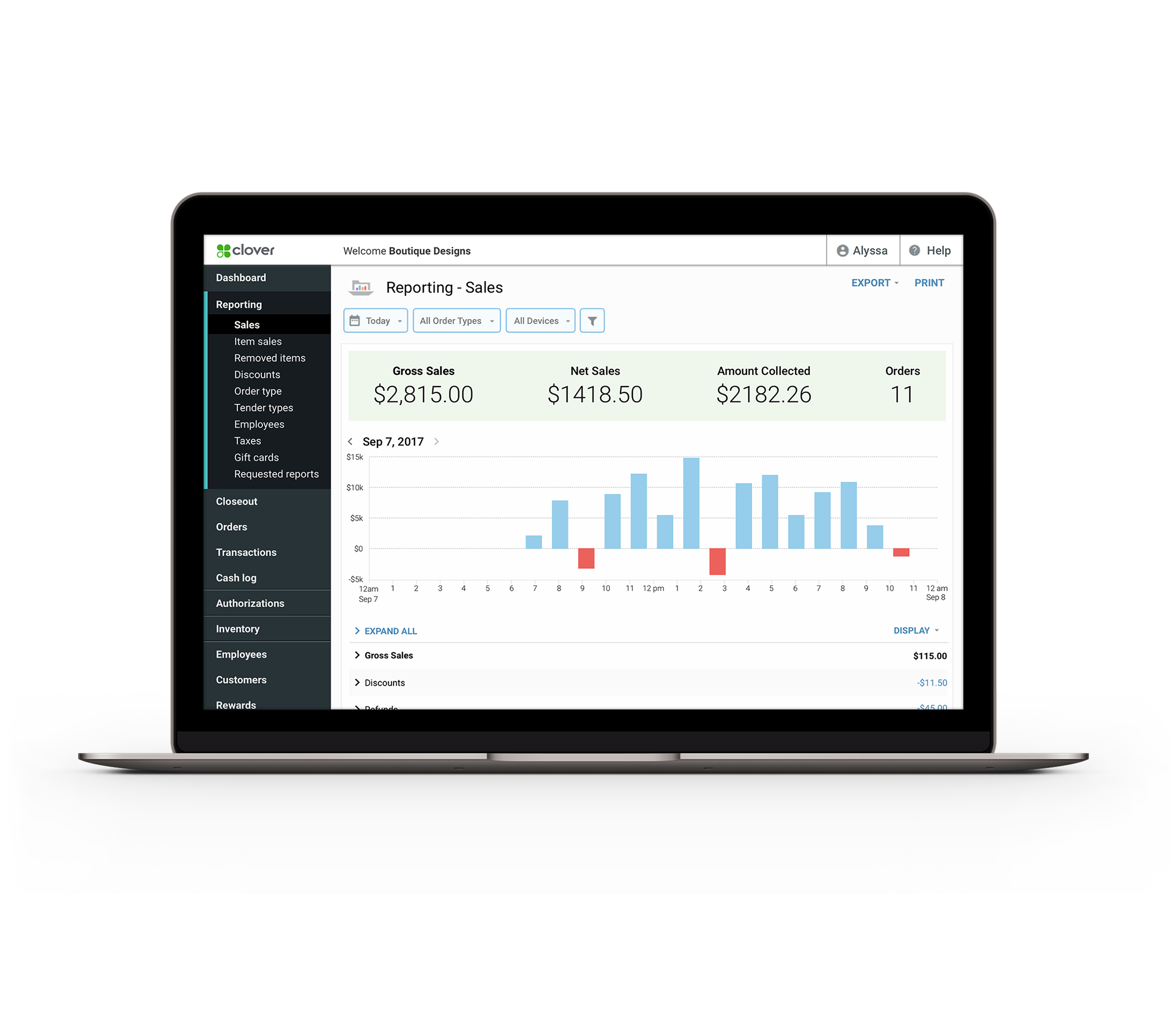 Identify the best and worst performing items, locations, times, and team members with Clover’s sales tracking system.