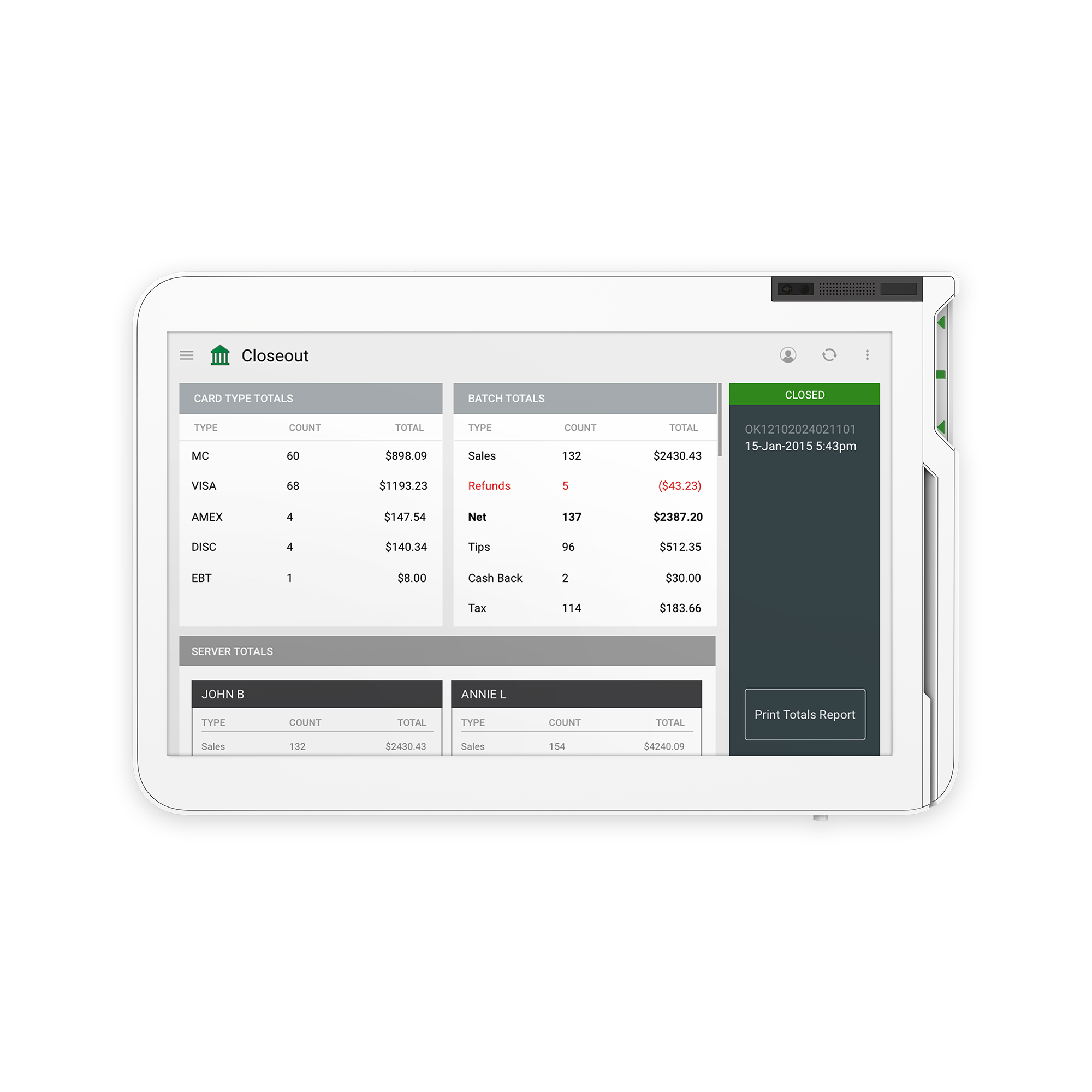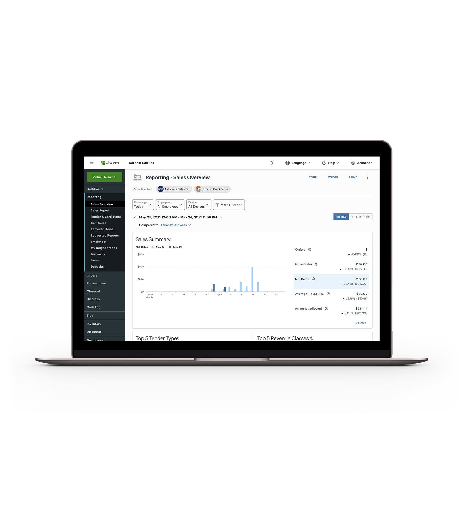 Use Clover’s powerful analytics tools to gain real-time insights into the trends and data that are driving your business, and track key metrics like revenue and sales.